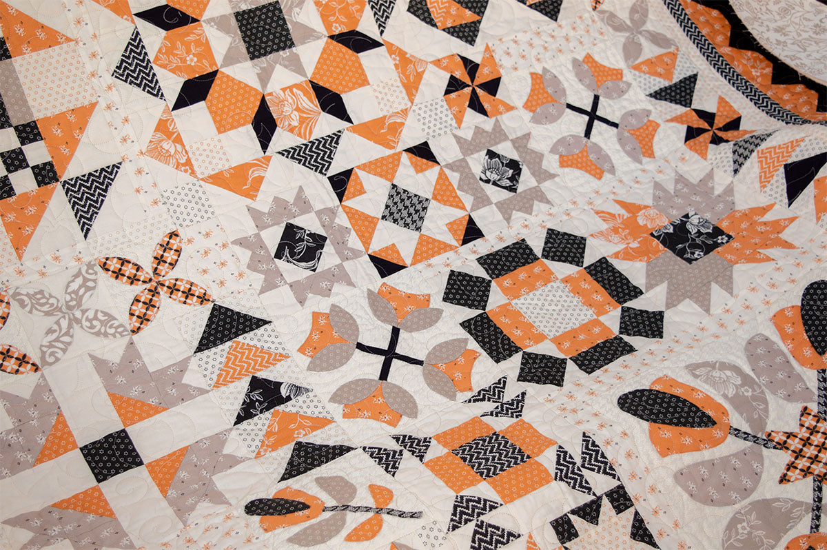 Edge-to-edge quilting is a continuous, all-over design stitched across the entire quilt without breaks for borders or blocks. It offers a uniform, seamless finish, making it an effiecient and affordable quilting option.